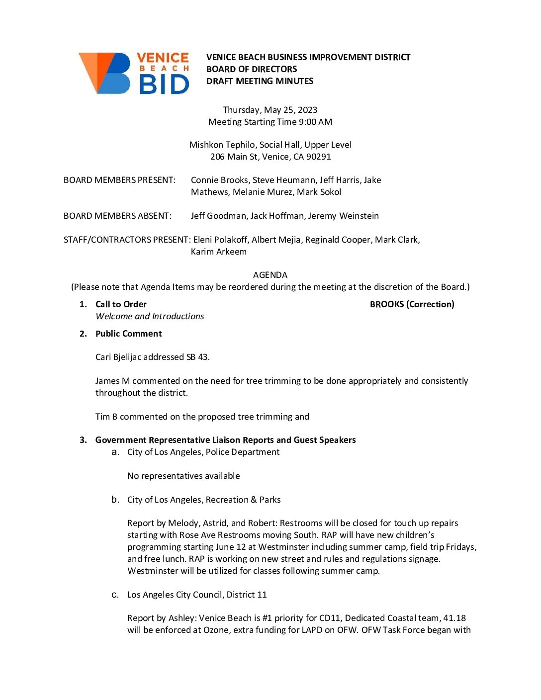 2023.05.25-Venice-Beach-BID-Board-of-Directors-Meeting-Minutes 2023.05.25-Venice-Beach-BID-Board-of-Directors-Meeting-Minutes December 13, 2025 Jeff Smith December 13, 2025