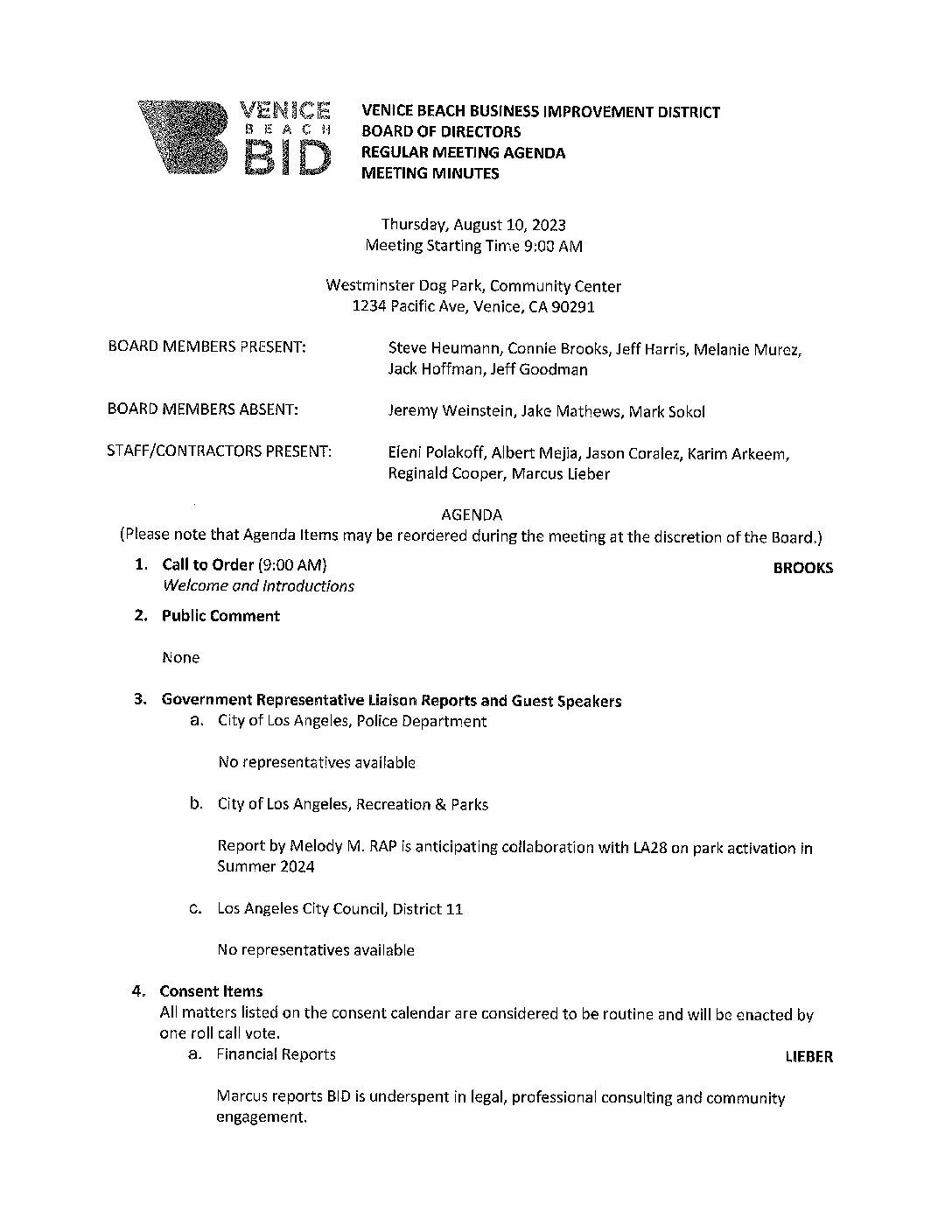 2023.08.10-Venice-Beach-BID-Board-of-Directors-Meeting-Minutes 2023.08.10-Venice-Beach-BID-Board-of-Directors-Meeting-Minutes December 13, 2025 Jeff Smith December 13, 2025