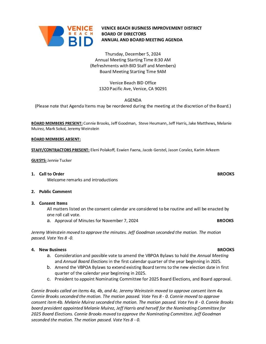 2024.12.05-Venice-Beach-BID-Board-of-Directors-Meeting-Minutes 2024.12.05-Venice-Beach-BID-Board-of-Directors-Meeting-Minutes December 13, 2025 Jeff Smith December 13, 2025