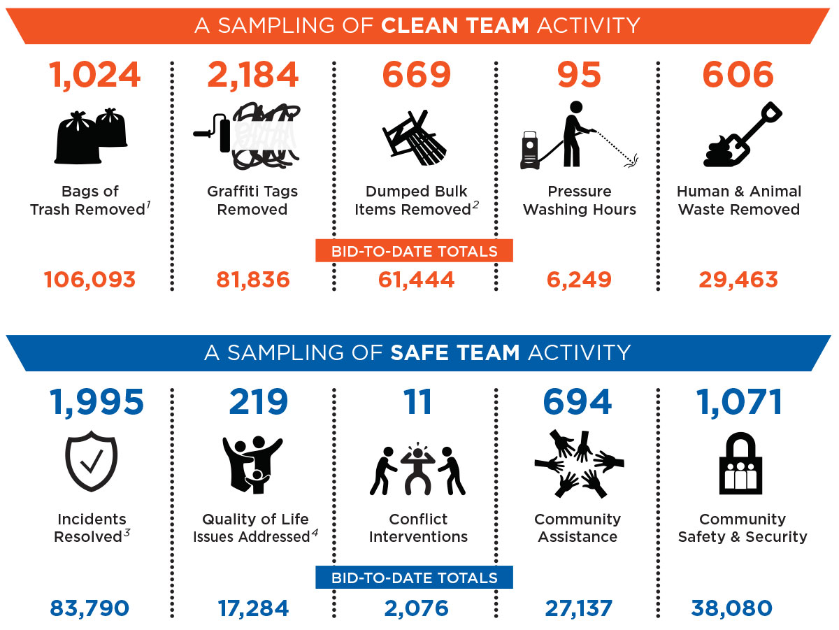 Clean Team data is provided by Chrysalis. Safe Team data is provided by Allied Universal.