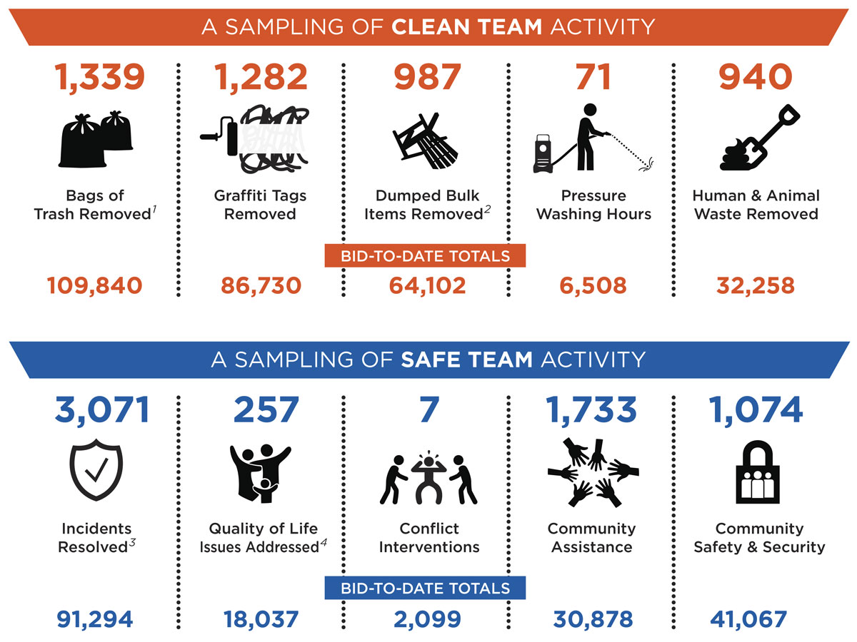 Clean Team data is provided by Chrysalis. Safe Team data is provided by Allied Universal.